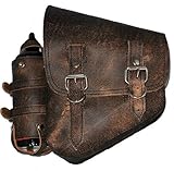 La Rosa Harley-Davidson Softail Chopper Rustic Brown Leather Left Saddle Bag with Extra Fuel Gas BottleYou are looking at the newest 2012 line from La Rosa Design. This is the La Rosa rustic brown leather left saddle bag with integrated fuel bottle holder for all Harley Softail & Rigid frame. The bag is made from Real Heavy duty leather!! With heavy duty straps that will hold the bag formed snugly in place. All the buyer needs to do is tighten the back leather straps to your frame and you are ready to ride. No screws or bolts of any sort. If the buyer wants the original classic La Rosa bag style, he or she can simply detach the fuel bottle holder within seconds. Did we mention this auction also includes the limited edition La Rosa fuel bottle as well. The La Rosa fuel bottle can hold up to 30 oz of extra fuel for that long road trips of yours. This will be for sure an eye catcher for any bikers out there! This bag was also designed to hug the lines of the frame for a perfect fitment! Every bag was personally inspect by the La Rosa Crew before being ship out, so buyer can ensure only great quality and nothing else! < br> Note: The rustic leather might be slightly lighter / darker and different textures due to the different batches of leather used in production. Buyers please be aware of this variation before making your purchase.